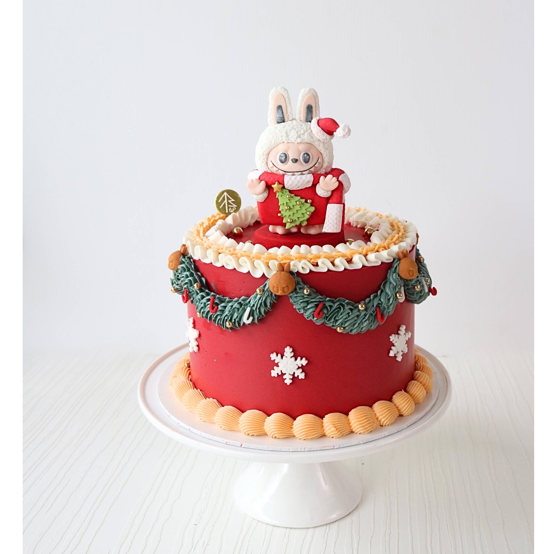 Introducing the Labubu Christmas Cake— a holiday blend of flavor and artistry! This delectable creation features layers of moist cake enveloped in a rich, creamy buttercream coating. Each cake is lovingly adorned with a whimsical assortment of Christmas decorations that capture the festive spirit.