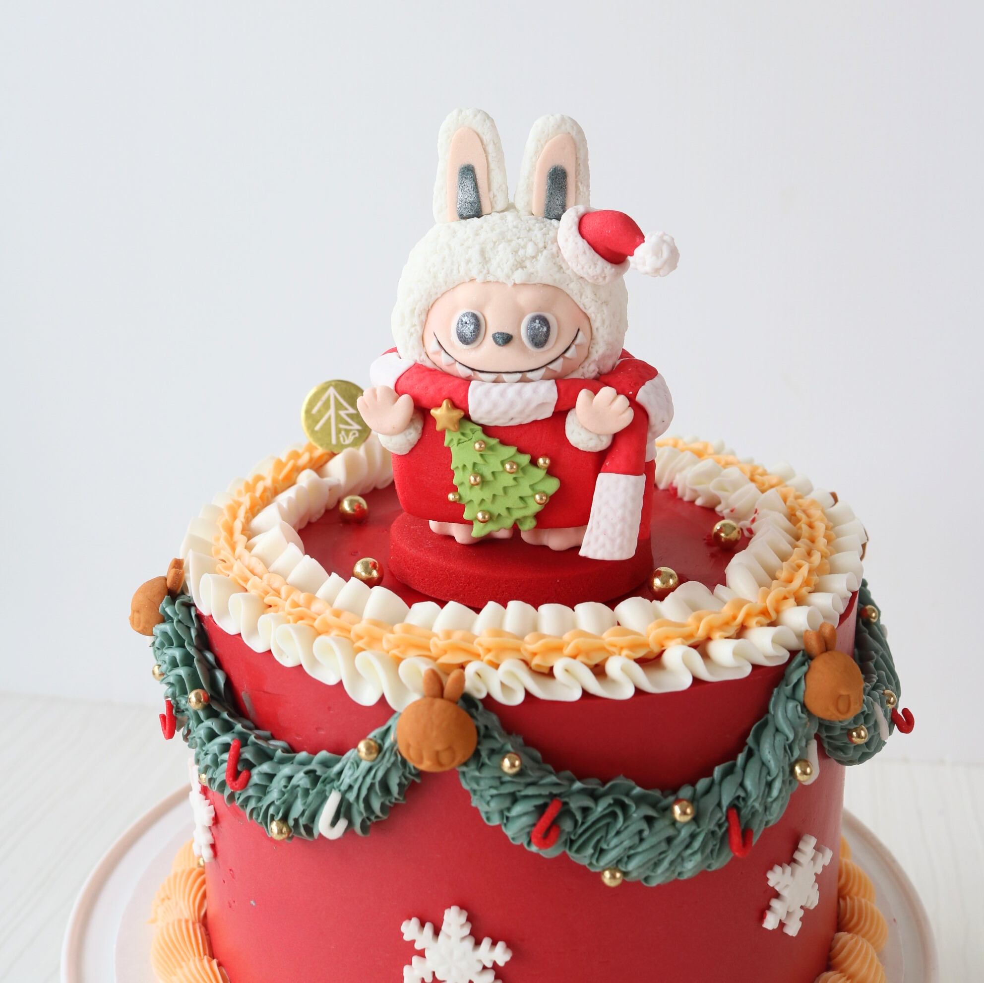 On top of the cake sits a charming handmade edible fondant white Labubu figurine, adding a playful touch that will delight guests of all ages. Whether you’re hosting a Christmas party or looking for a unique treat to spread the joy, the Labubu Christmas Cake will enchant and satisfy you. Celebrate the holiday season with a cake that’s as delicious as it is delightful!